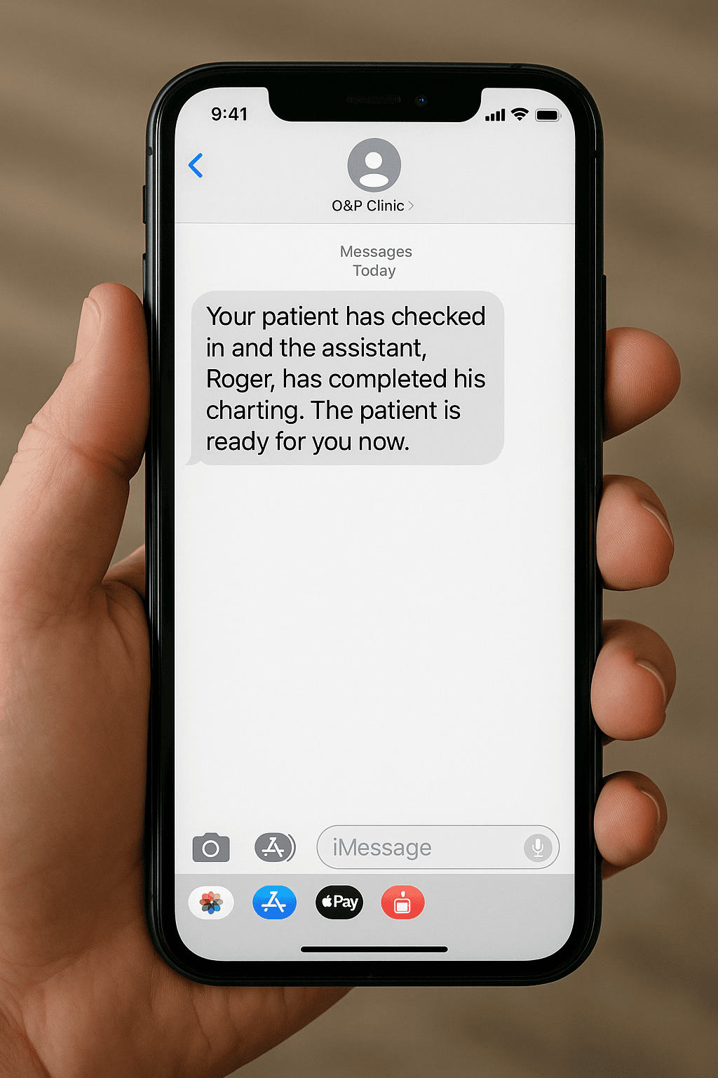 - Staff don't have to hunt down clinicians when the patient's ready for them.